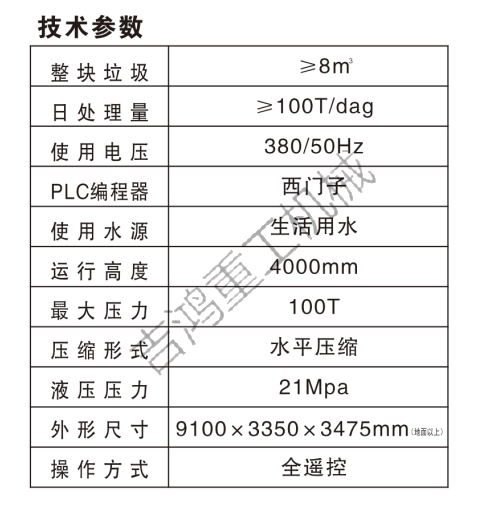 JHZG3120型垂直三缸四柱垃圾壓縮中轉(zhuǎn)站